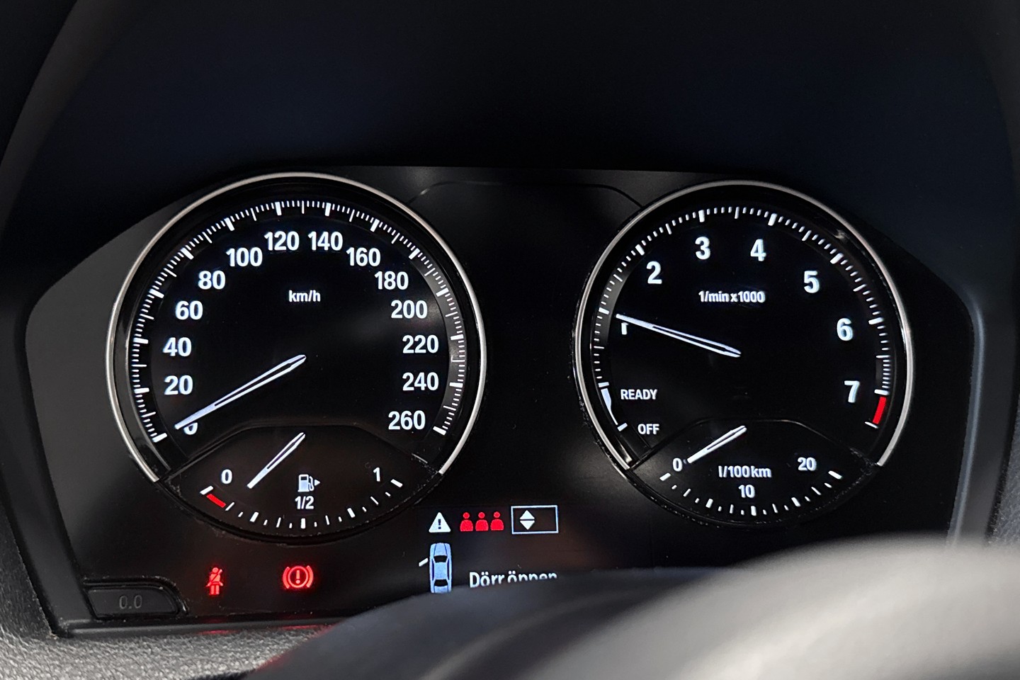 Just vår bil är den senaste faceliften av denna generation 1-serie vilket innebär att du får det uppdaterade halvdigitala mätarhuset och uppdaterat infotainment system om man jämför med en likadan från 2017 eller tidigare.