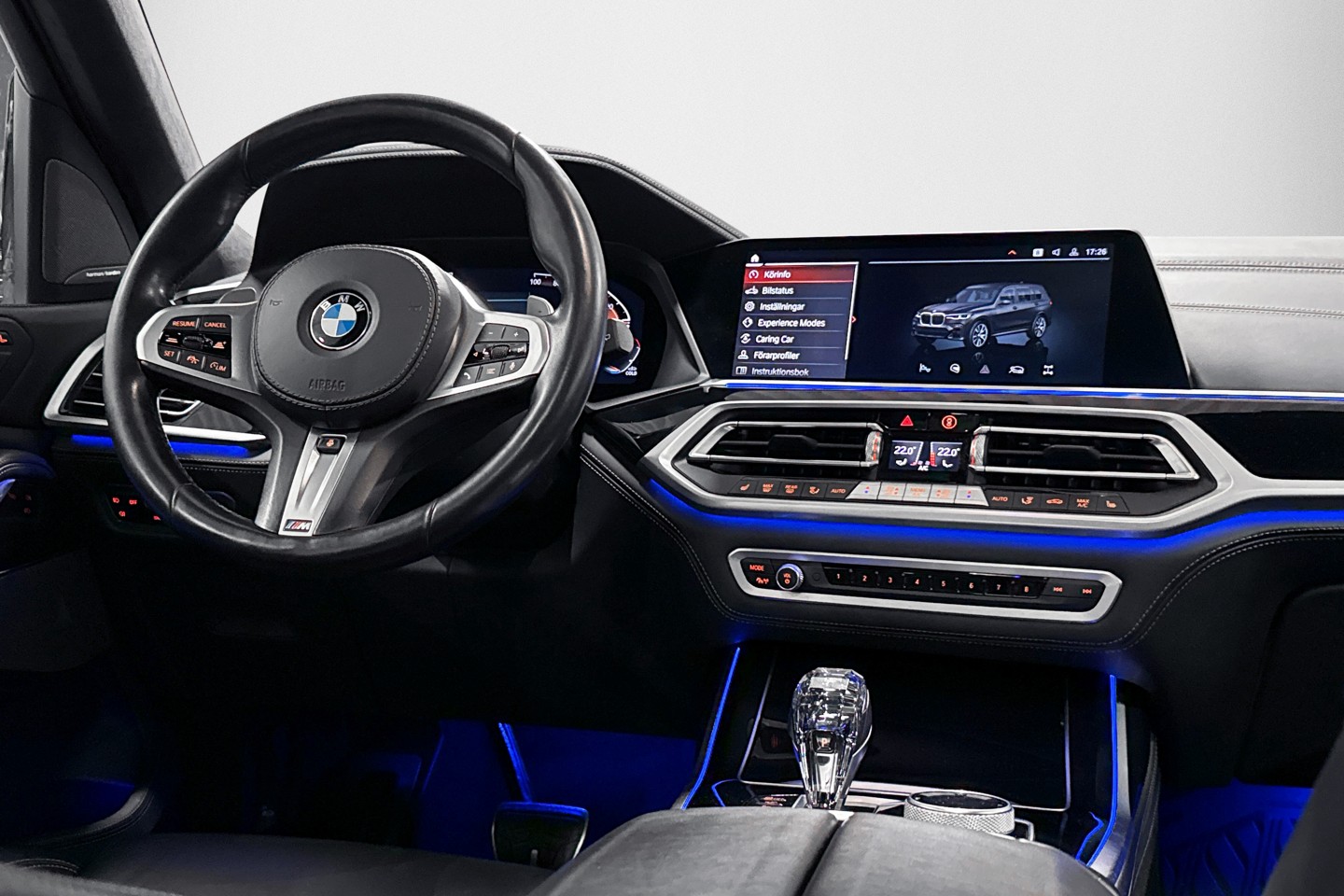 Nu har vi fått in en mycket fin BMW X7. Bilen är smakfullt specad från fabrik och kommer i en elegant färgkombination med Black Sapphire Metallic exteriör och svart Merino läderinteriör.