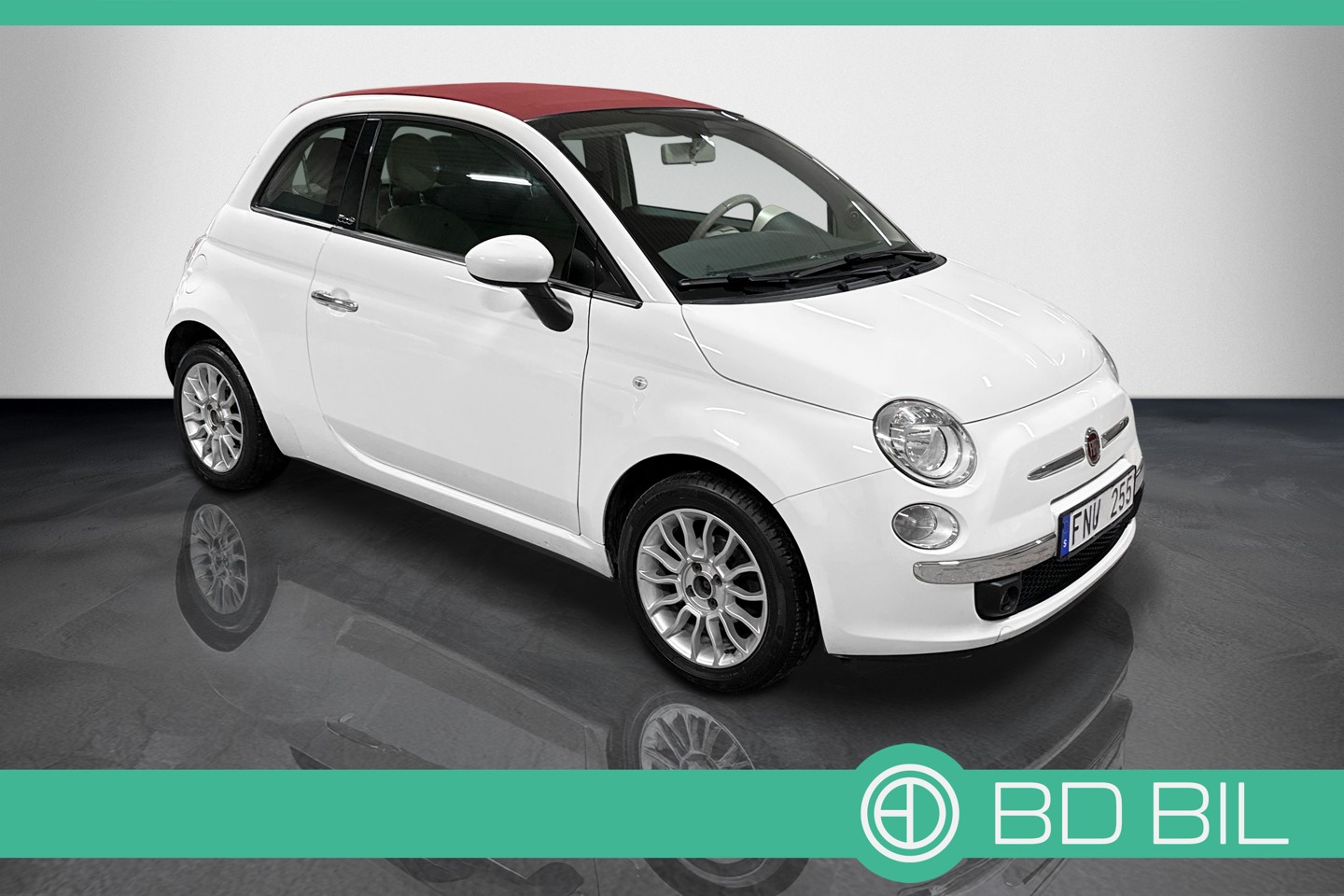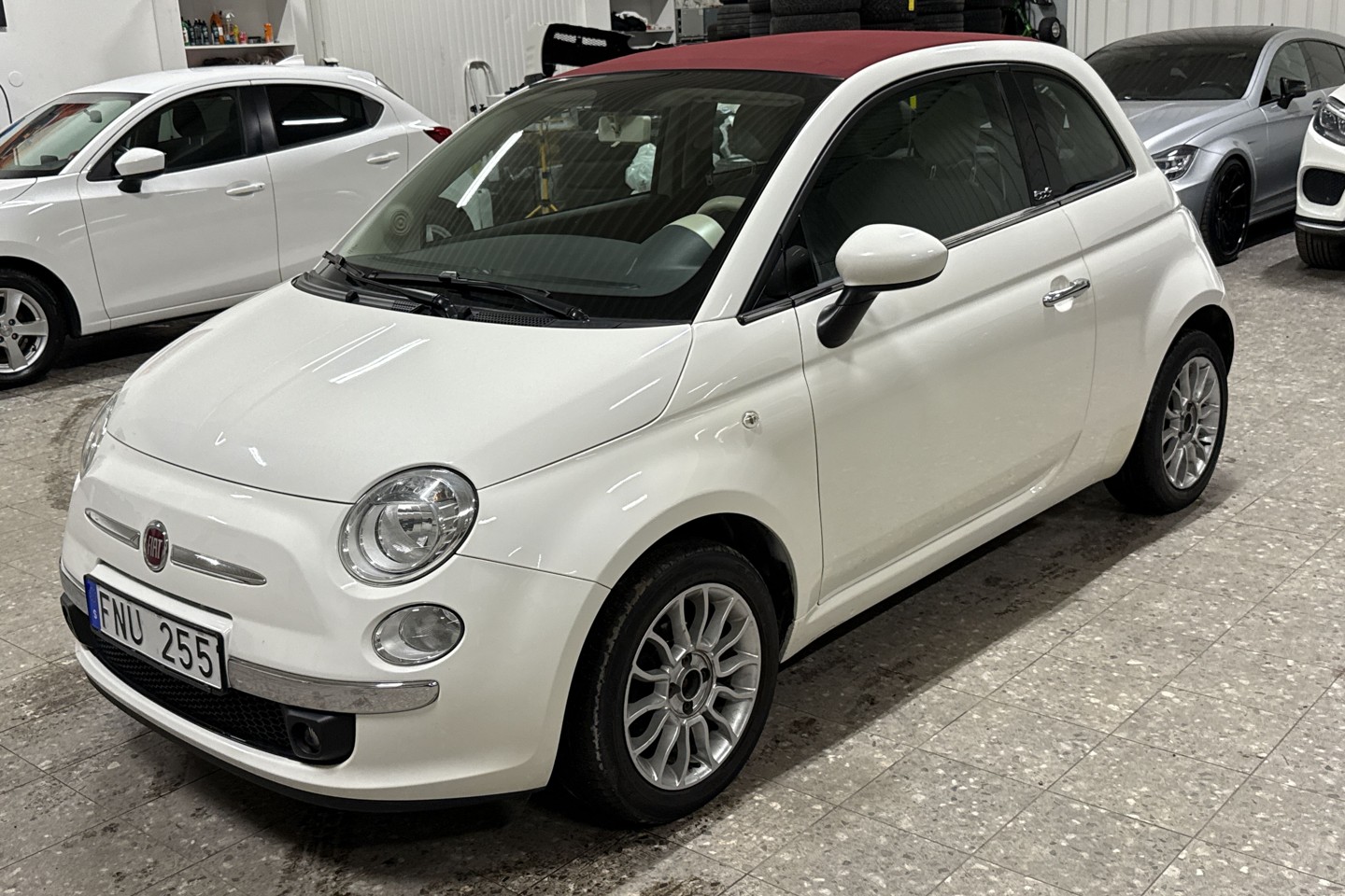 Nyinkommen Fiat 500C från 2014 med endast två tidigare brukare. Bilen har en mycket tilltalande färgkombination med vit kaross, röd sufflett och svart halvskinnsinteriör. Går bra i motor och låda samt hållit sig fin i skicket kontra ålder. Bilen har bytt kamrem vid 4.400 mil och levereras nyservad.