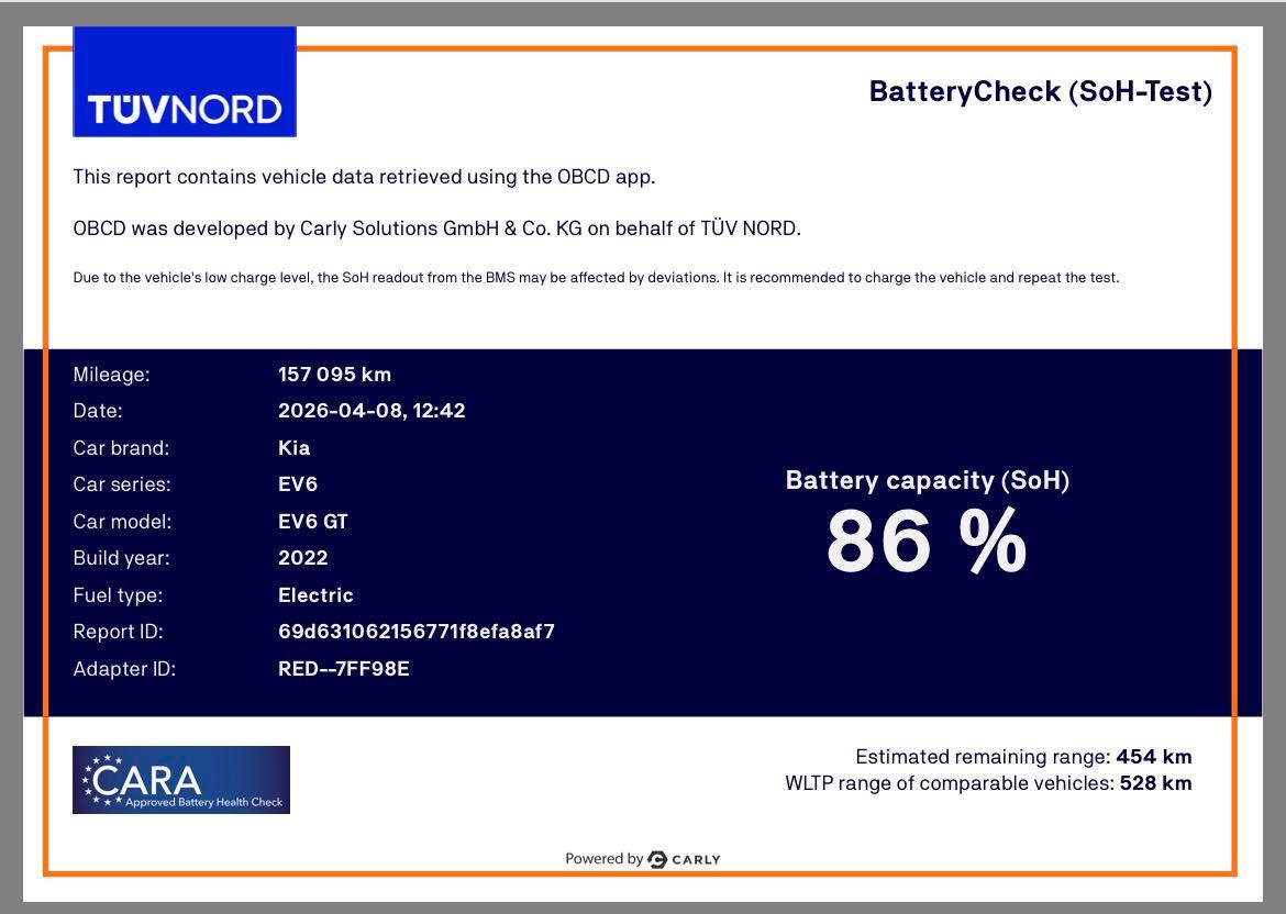 Ny inkommen Kia EV6 med det stora batteriet på 77.4 KWH vilket erbjuder en räckvidd på hela 528 km enligt WLTP. Det goda slutar inte där.