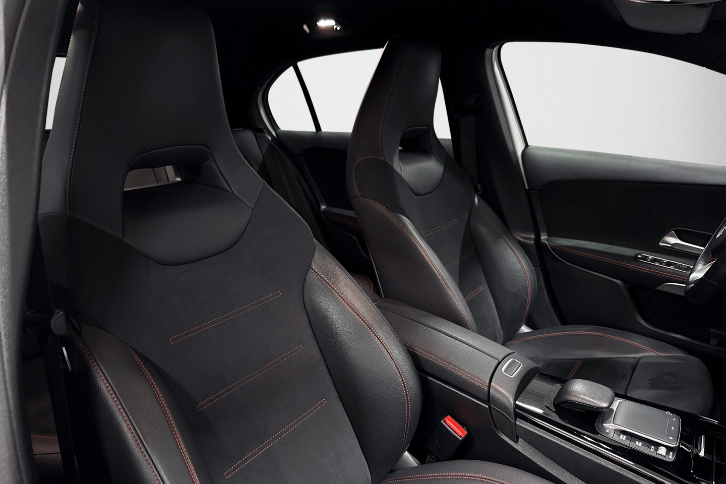 Du får även rätt interiör i halvläder och alcantara med svart innertak.
