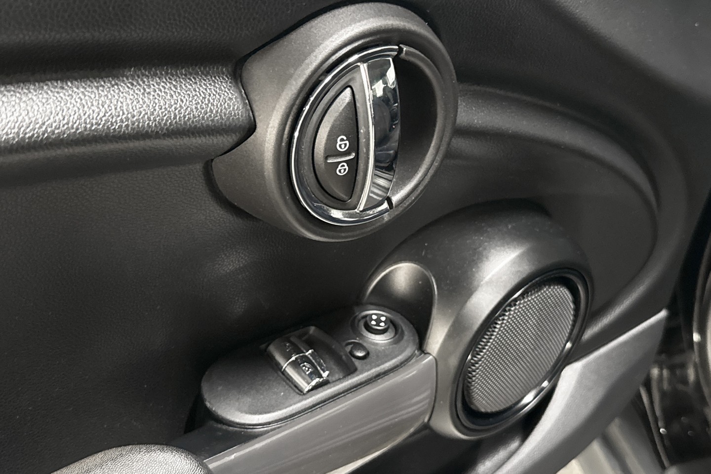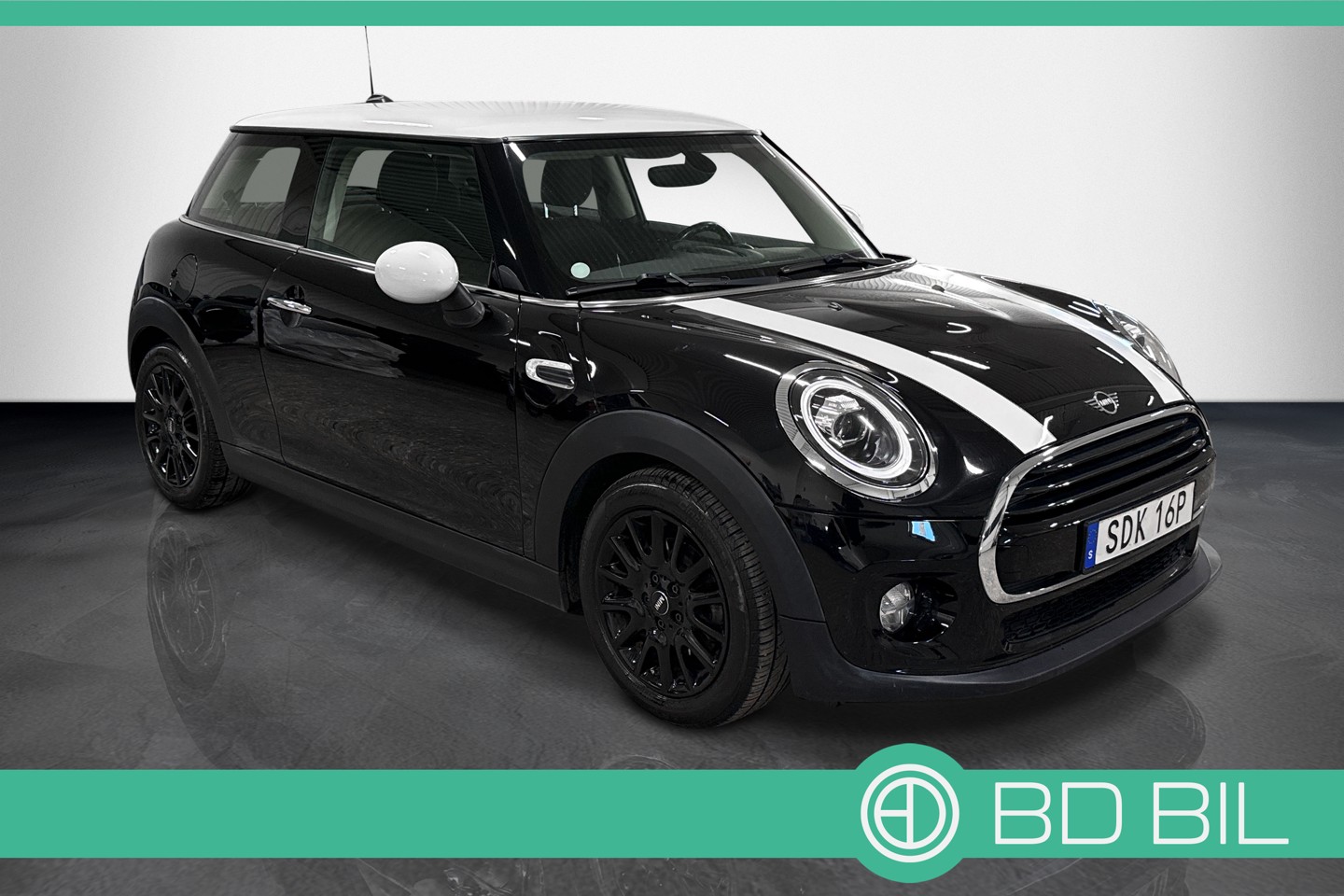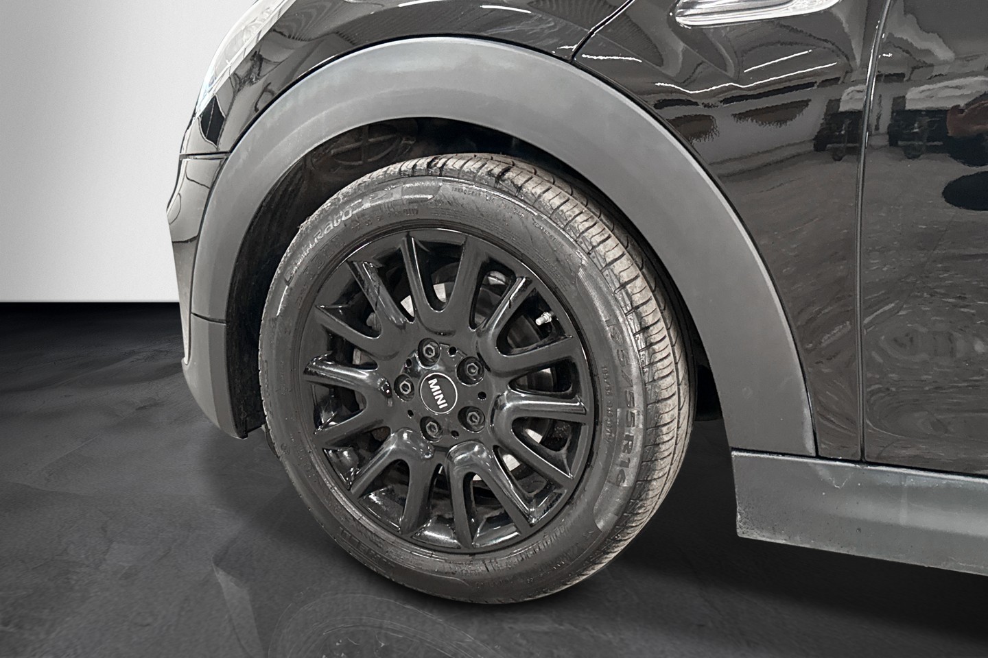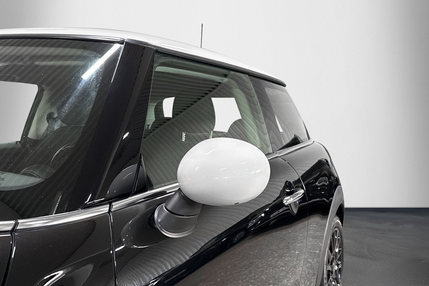 Nyinkommen Mini Cooper i en svartmetallic kulör även kallad midnight black metallic.