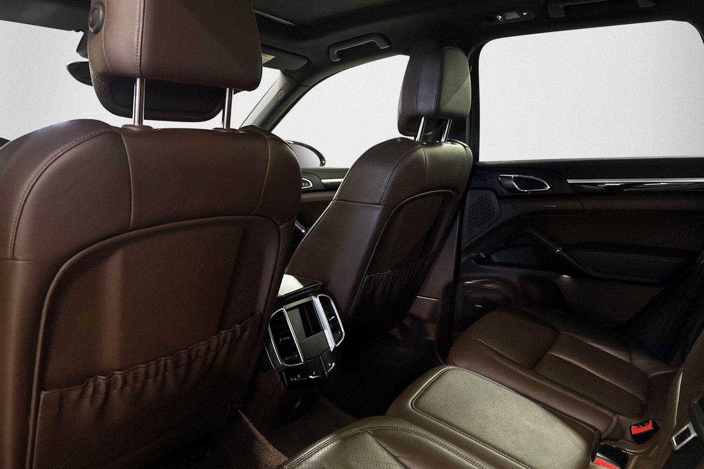 Just detta objekt har en unik färgkombination där exteriören är lackerad i Mahagony Metallic och matchas perfekt med den bruna läderklädseln.