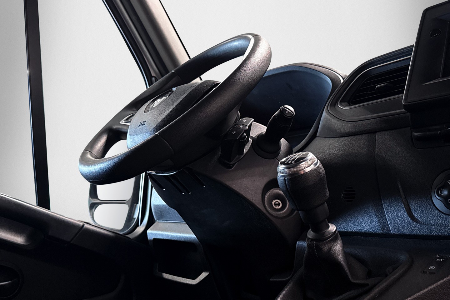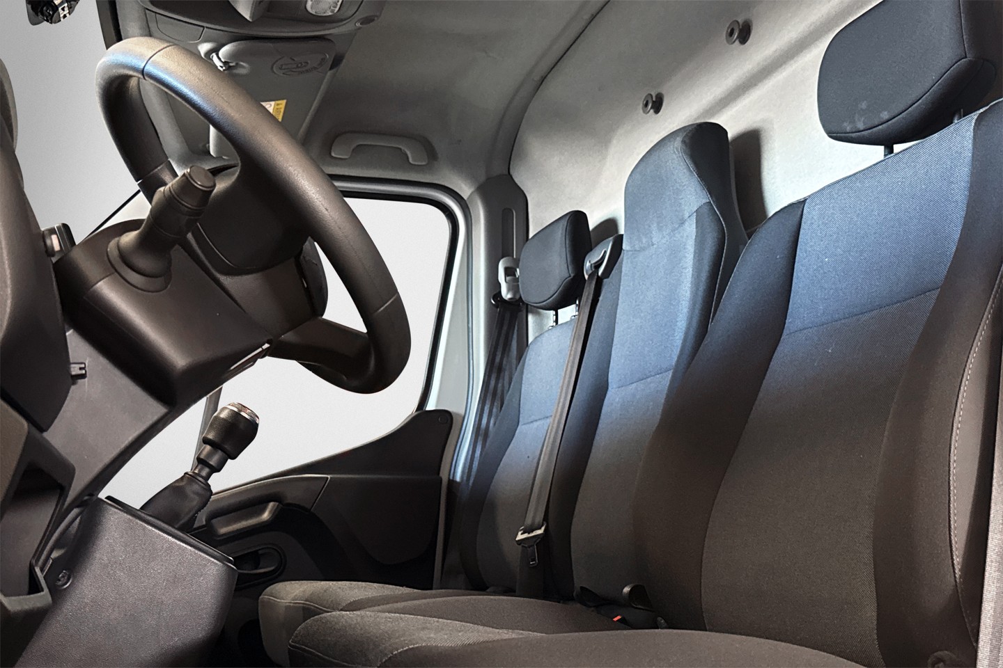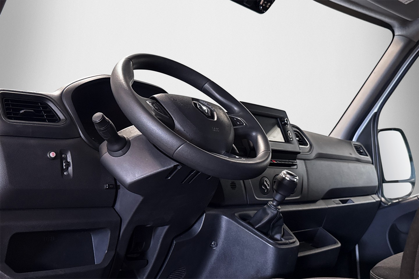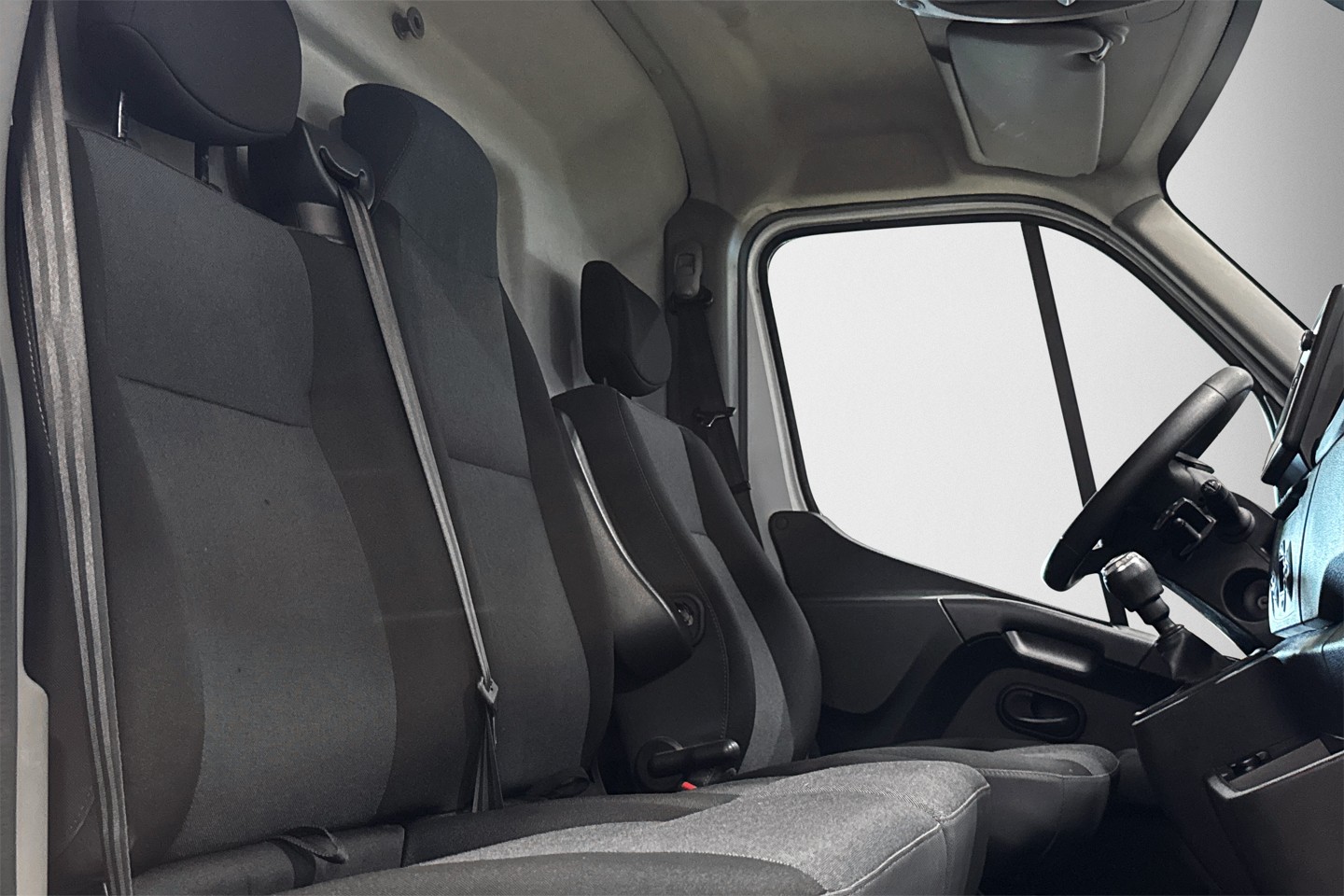 Nyinkommen Renault Master från 2021 med endast en tidigare brukare. Bilen är i L2H2 utförande och har tre sittplatser fram.