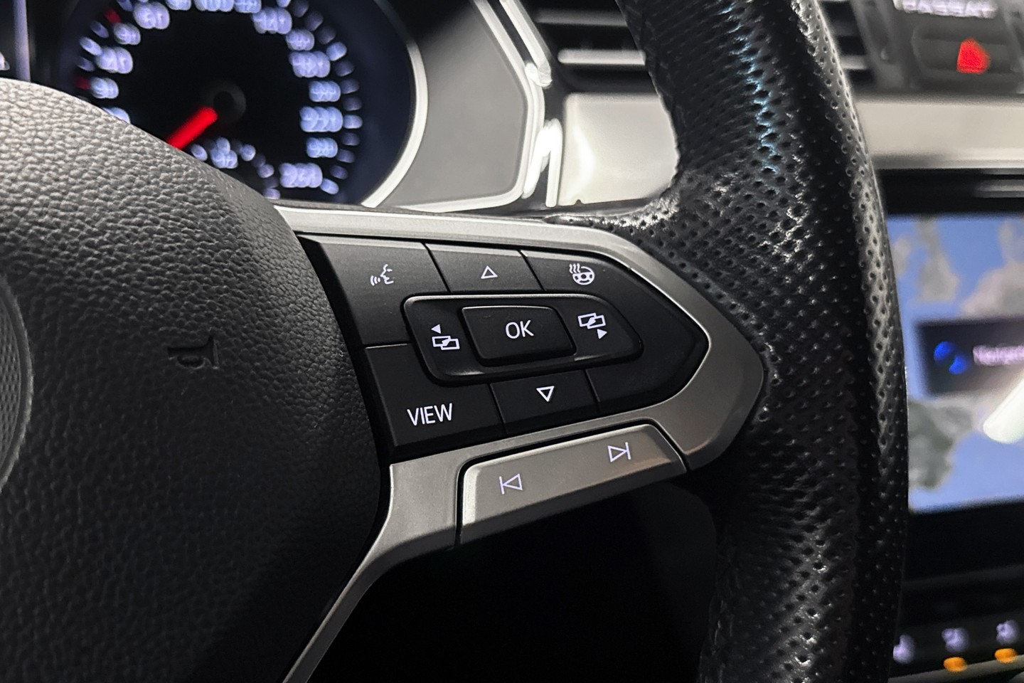 Vår bil är faceliftmodellen från 2020 med uppdaterad ratt, lampor och infotainmentsystem.